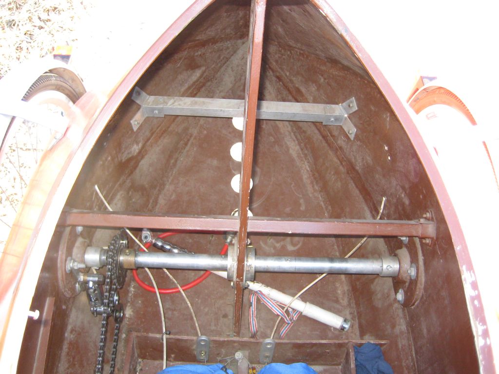 Tekstissä oli, että taka-akseli katkaistiin kääntymisen helpottamiseksi. Pitäisi tehdä rakenne, jossa yhtenäinen pyörivä taka-akseli menisi tavallisten vapaarattaallisten napojen läpi ja oikea pyörä vetäisi oikealta puolen akselin päästä vapaarattaasta.