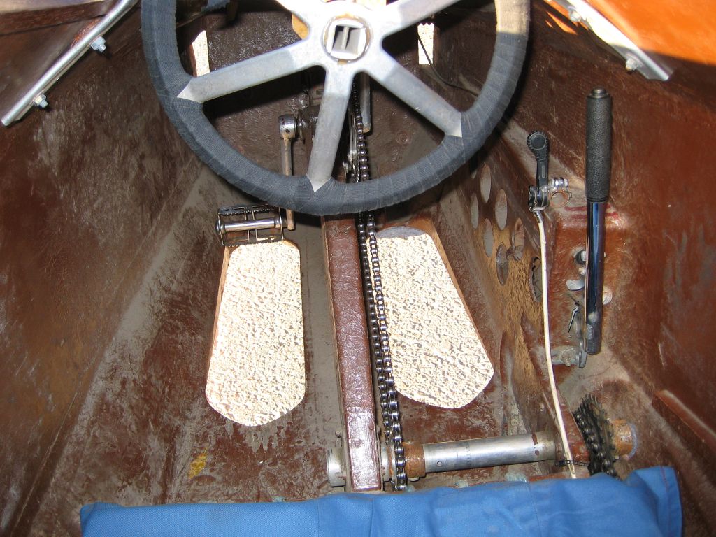 Ovatkohan nuo Le Mans -tyyliset kohoumat polvia vai kengänkärkiä varten! Jos tuohon laittaisi kiihdytysautomaisen kevyen etuakseliston kahdella rattaalla, näkyvyys eteen olisi mainio.