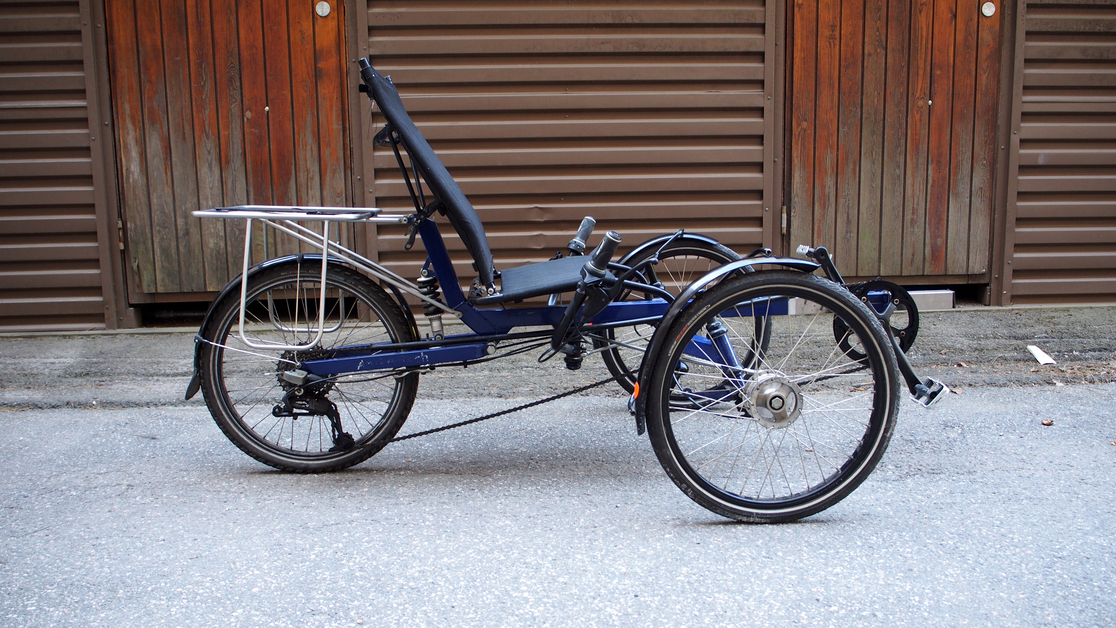 Myydään AnthroTech sininen kolmipyöräinen trike. Monipuolinen trike kaupunkiajoon ja esim. kuormien kuljettamiseen. Poljinetäisyys ja tätä kautta ajajan pituus on säädettävissä lennosta pikalukon sekä ylimääräisten ketjurissojen ansiosta. 120 kg maksimipaino mahdollistaa painavamman ajajan ja/tai jopa 30kg kuormaa tarakalla. Hydrauliset rumpujarrut ja SRAM DualDrive vaihteisto varmistavat toiminnan säässä kuin säässä. Korkea istuinkorkeus, suhteellisen pysty ajoasento ja takajousitus tekevät tästä erittäin mukavan ajokin, joskaan nopeusennätysten metsästykseen tätä ei kannata käyttää.