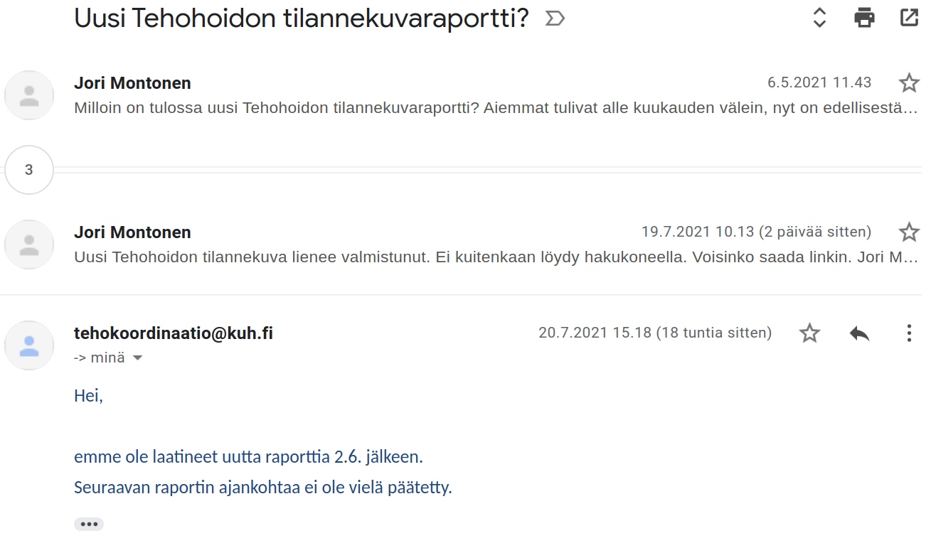Kysyin taas tehohoidon kuormitustilannetta, koska tämä julkinen asiakirja ei ole ollut enää julkisesti löydettävissä.