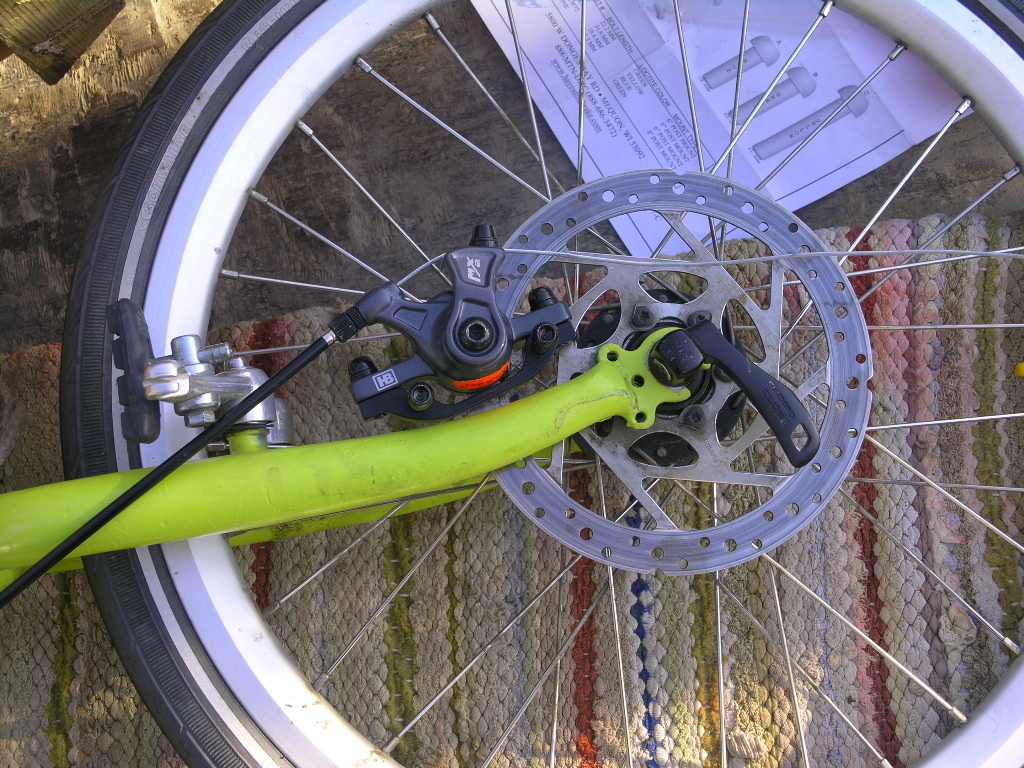 Tänään löysin paikallisesta urheiluliikkeestä levyjarrut levy + jarruosa . Laitan tuohon kuvan miten sen meinasin tuohon asentaa , meneekö paljon mettään ?