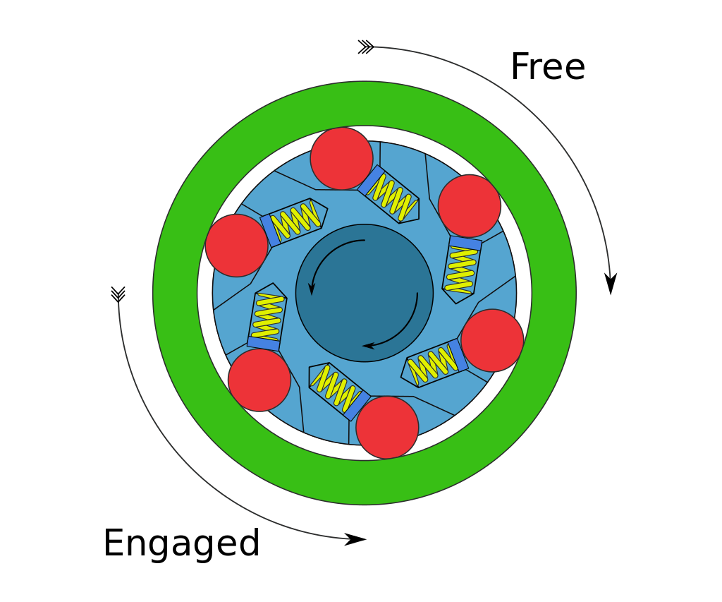 Olisiko vika noiden säppirullien rasvojen jumittamisesta tuonne viisopintaan, tai jousten löystymisestä. Kun moottori pienemmällä jännitteellä hitaammin saavutti kiekon nopeuden, ehtivät rullat vaeltaa keskipakovoiman avustamina laakerin kehälle. Kun moottori käynnistetään vauhdista, sisäkehä pyörii ja jouset ja keskipakovoima painaa rullia kehää vasten. Kun sitten moottori käynnistetään isolla jännitteellä, kiihdyttää iulkokehä kiekon nopeuteen liian nopeasti, eivätkä rullat ehdi purra läpi niiden itsensä silittämästä jähmeästä rasvakalvosta. Matalammalla jännitteellä moottori kiihdyttää hitaammin tuon nopeuden ohi, joten rullat ehtivät purra kalvon läpi. No, ainakin tuo näyttäisi toimivan tuolla 16 V jännitteellä. Lisäksi nopeus on talviseen kaupunkiajoon siedettävämpi. :)