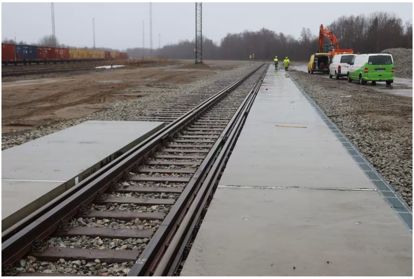 "Telinvaihtoraiteessa on normaalit kiskot, mutta niiden keskellä on niin sanotut vastakiskot, jotka ohjaavat kapeampiraiteisilla radoilla kulkevia ruotsalaisia vaunuja kulkemaan suomalaisella raiteella. Kuva: Väylävirasto"