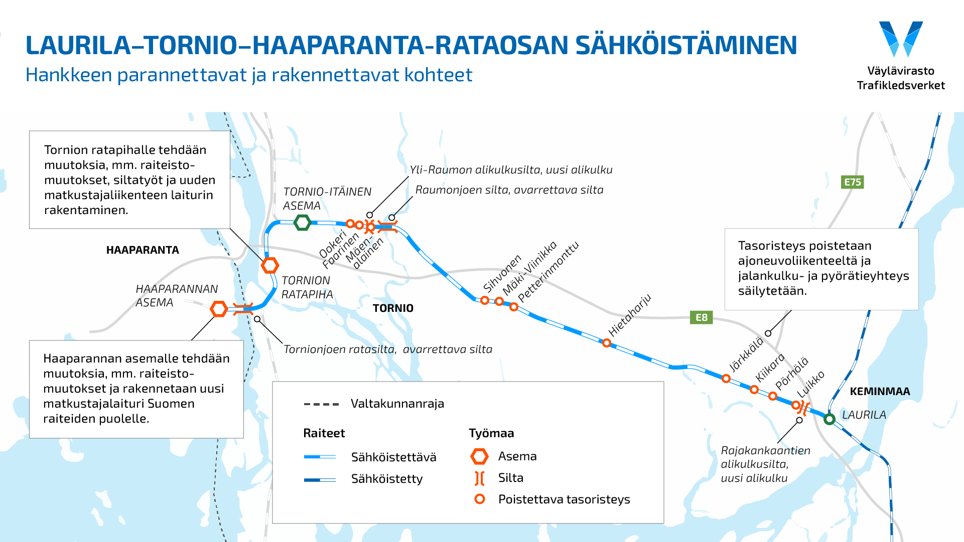 Ennen muutosta Tornion ja Haaparannan rajalla oli vierekkäin Ruotsin ja Suomen raideleveyksillä olevat kiskot ja tavaraa jouduttiin rajalla siirtämään vaunujen välillä." https://yle.fi/a/74-20003611