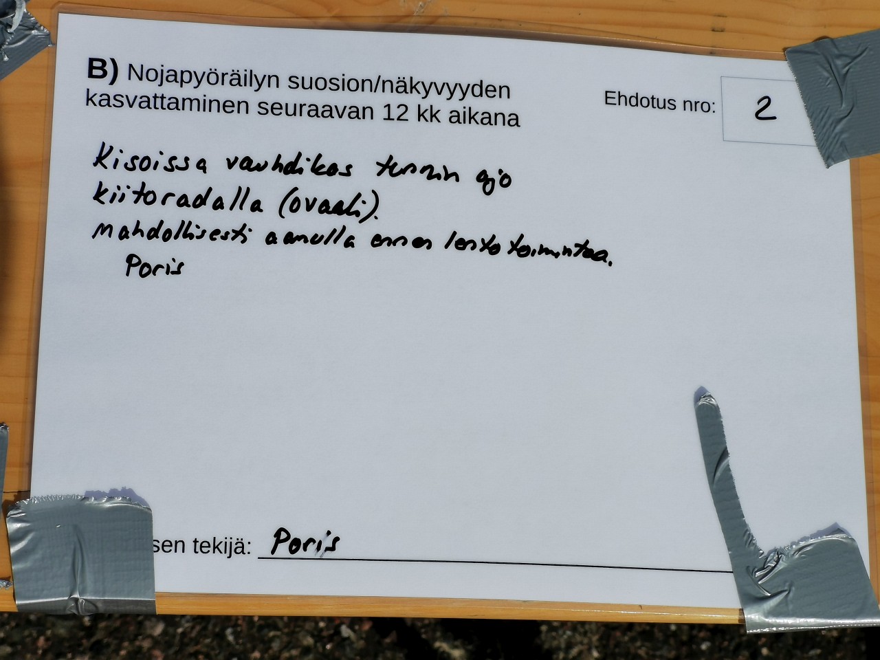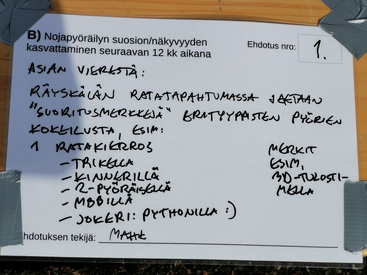 Tässä vielä lauantain äänestykseen tulleet ehdotukset. Päätettiin että jatketaan tästä aiheesta foorumilla, tarvii aloittaa oma viestiketju... -> https://www.nojapyorafoorumi.fi/viewtop ... f=2&t=7111