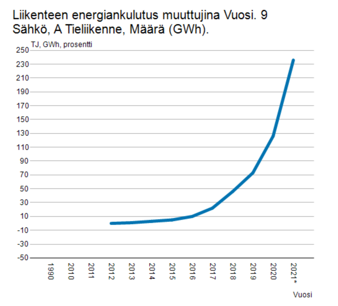 Liikenteen bensiinin ja dieselin yhteiskulutukset ovat pysyneet ennallaan 1990-2020. Painotus on vaan muuttunut dieselin suuntaan. Sähköinen liikenne puolestaan on ankarassa nousussa. Parin viime vuoden aikana sähkökulkineita on myyty kiukulla. Siinä ei riittäne sitten varavoimatkaan, kun kaikki autot on sähkäreitä? Vai?