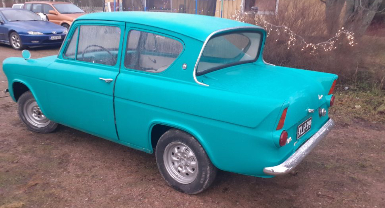 Ford Anglia on käynyt mielessä aiemmin "nojapyöräkorin" muotona, juurikin tuon takaikkunan takia.
