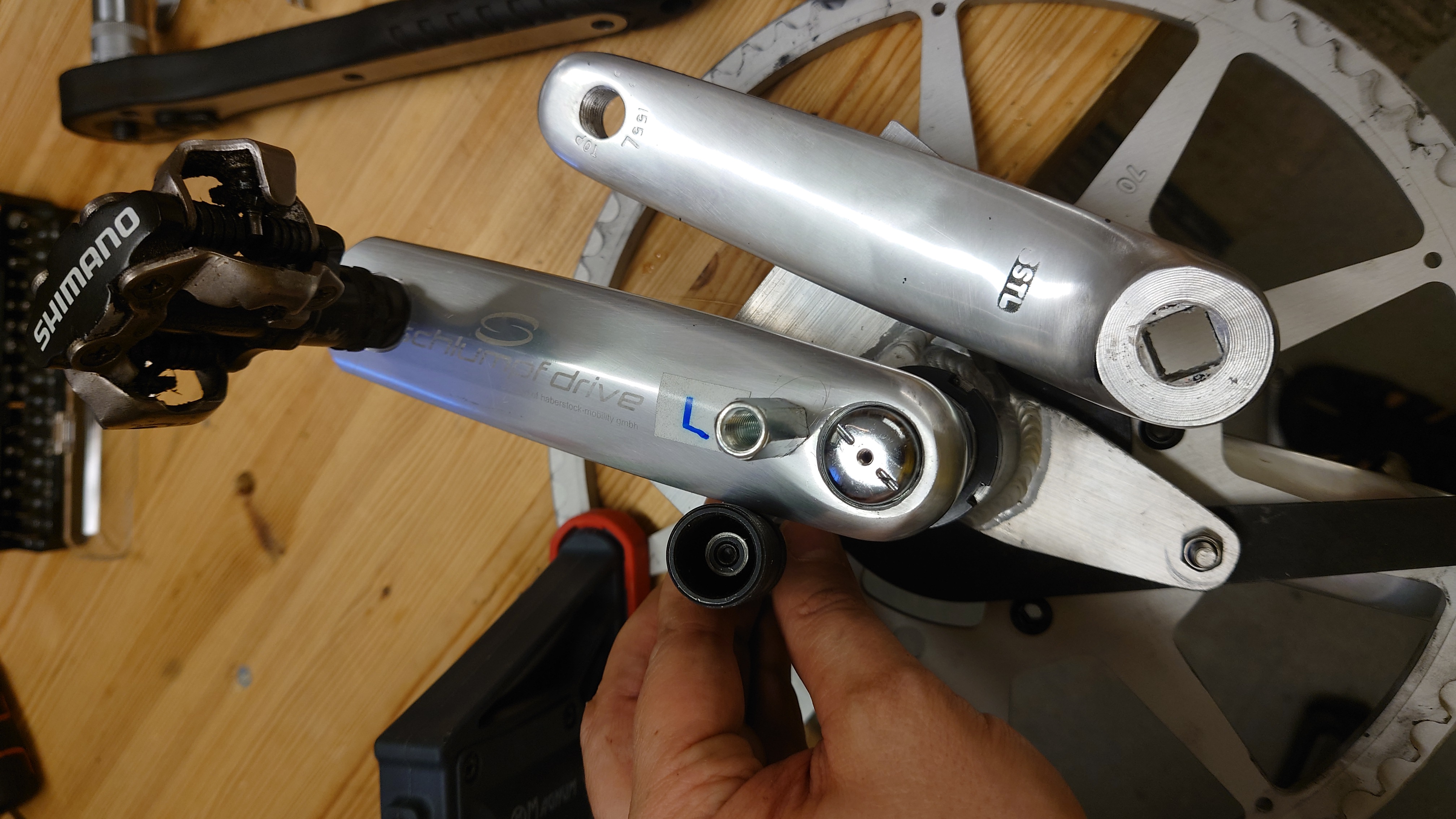 • Ulosvetäjä, jonka tapin saa ruuvattua tarpeeksi pitkälle ulos että ulosvetäjä menee tuon jatkomutterin päälle kun se on kampiakselin pään ja ulosvetäjän välissä.