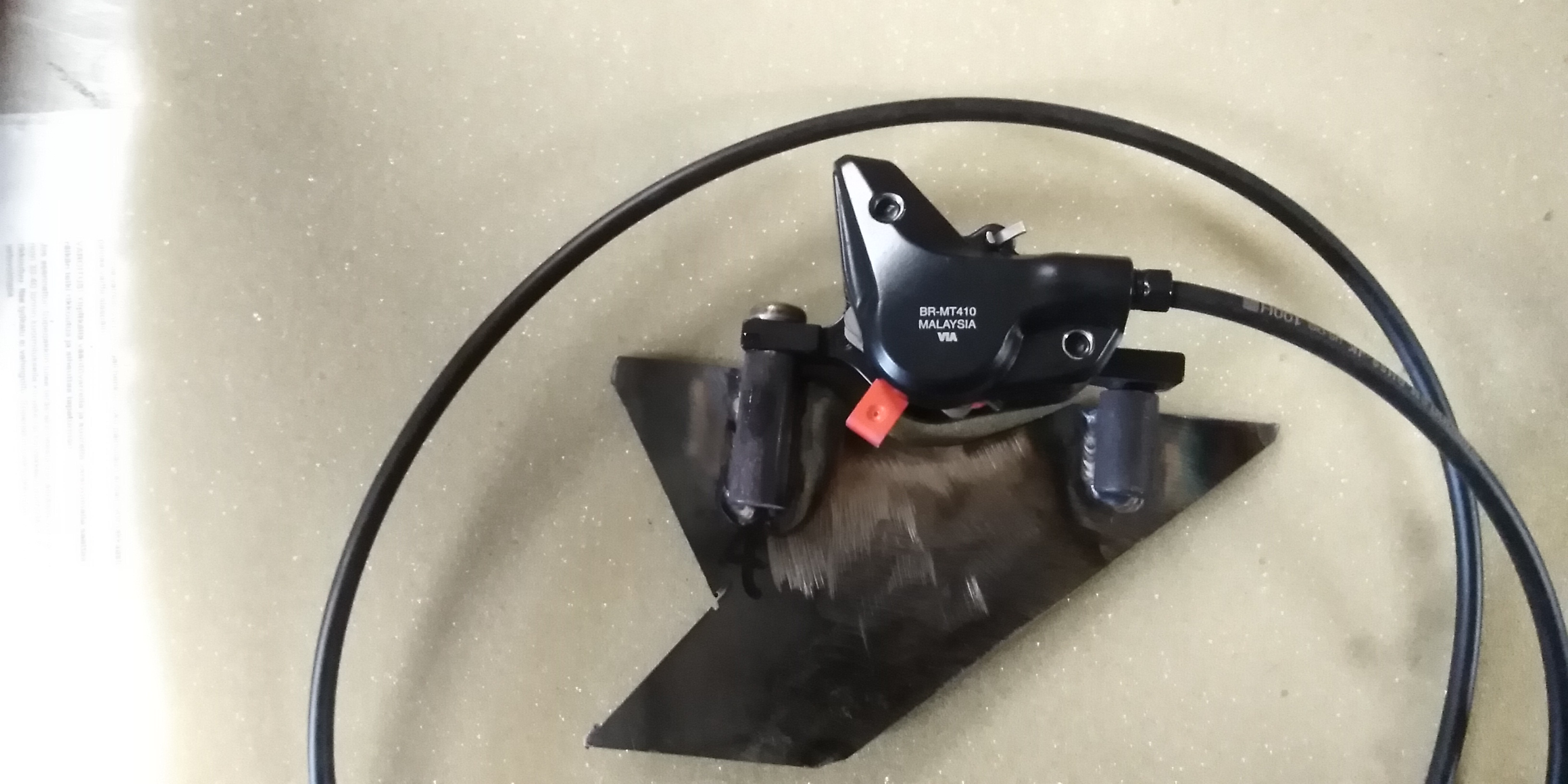 Levyä vielä muotoillaan haarukkaan sopivaksi. Jarruosat dikesikountista [edit.. Bikediscount] ihan pikkurahalla. Yllättävän hyviä ollu nää halvimman pään hytrauliset vauhdin himmaimet.