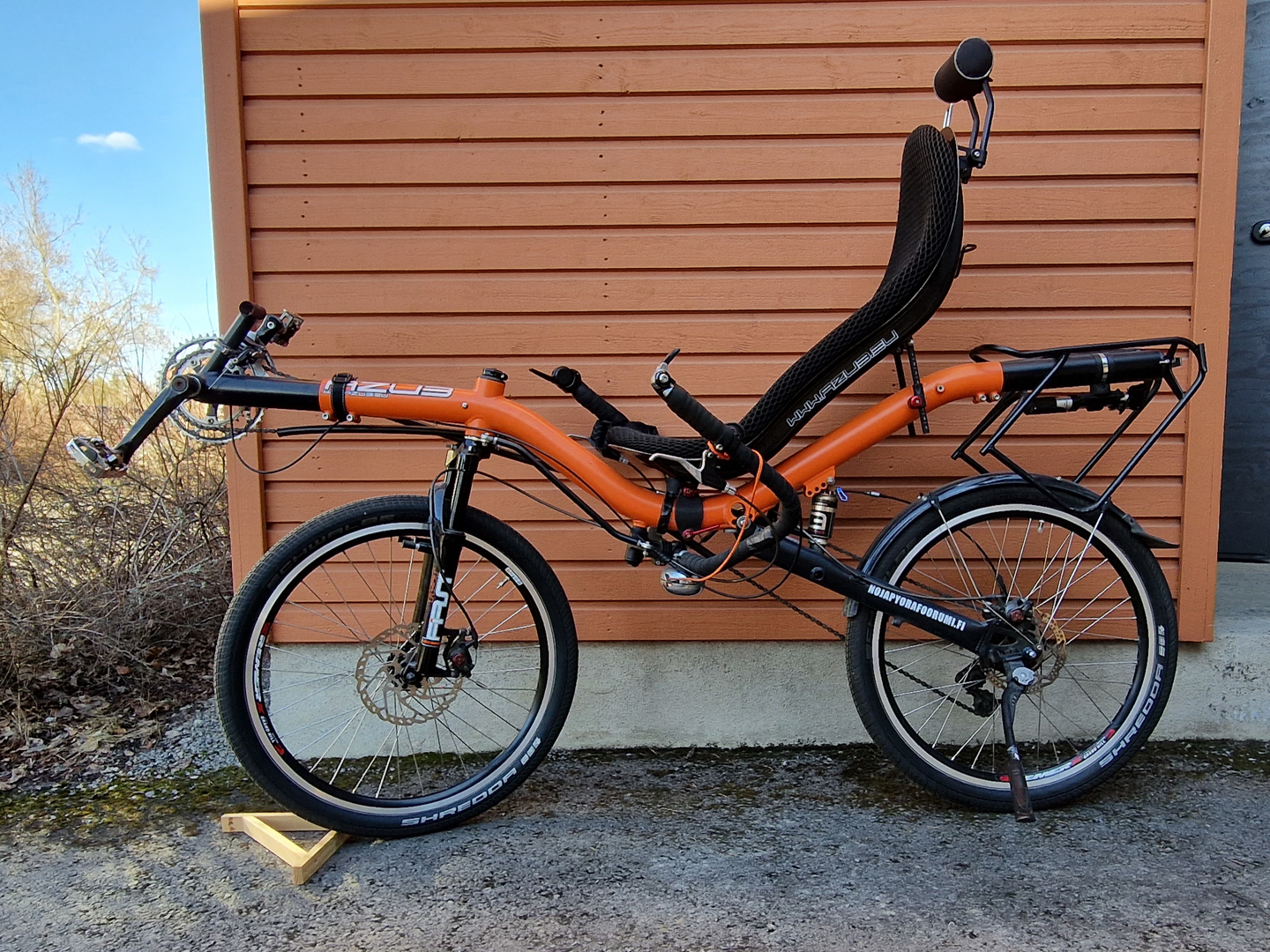 Olen pyörän toinen omistaja ja se on ollut minulla 2 vuotta. Luovun pyörästä, koska 2-pyöräisillä ajaminen ei oikein luonnistu liikuntarajoitteeni vuoksi, joten jatkan nojakolmipyöräilyä.