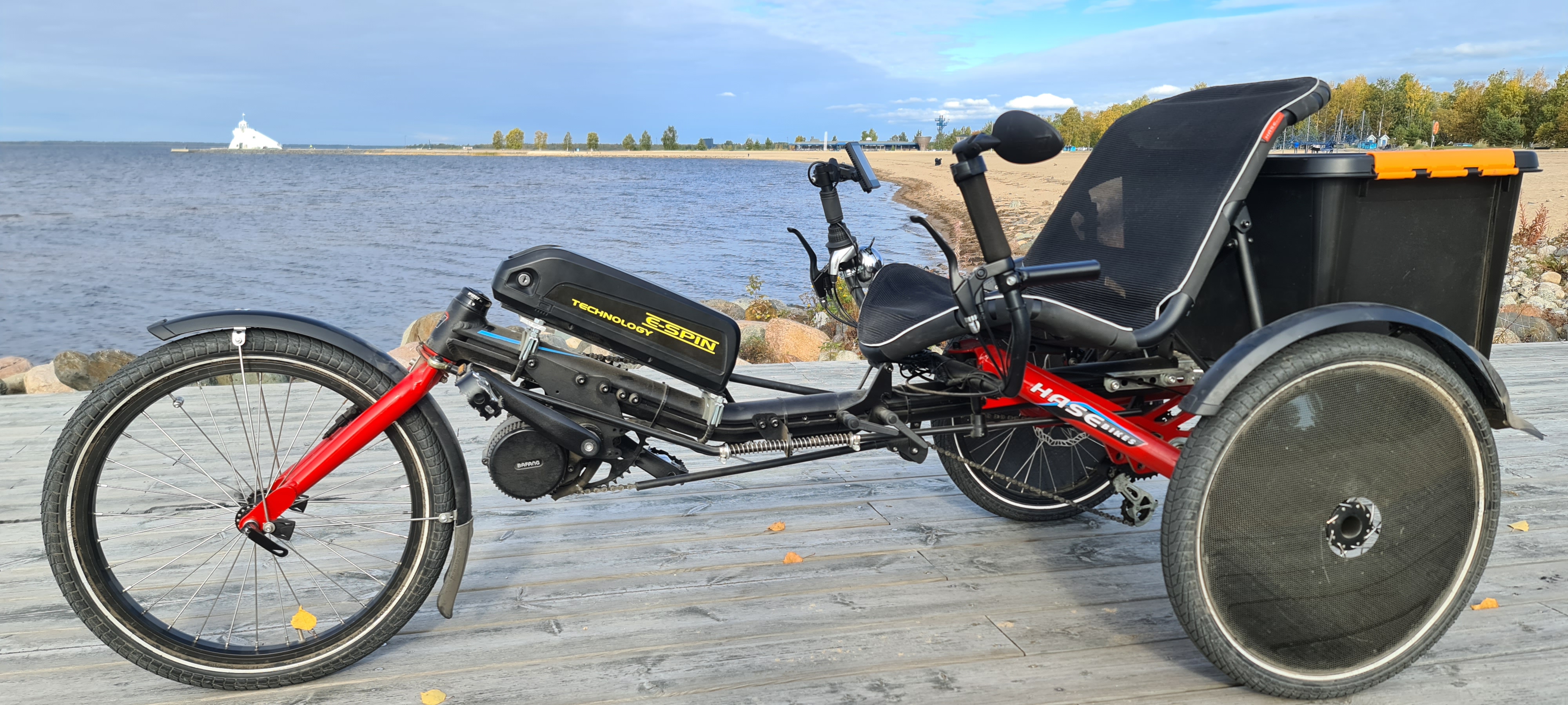 Myytävänä uudenveroinen sähköavusteinen Hase Trigo. Ajettu 416km, Bafang 750w keskiömoottori, 52V/16Ah akku, 50 litran tavaraboxi, vetosilmukka peräkärryä varten, ajovalot, peukalokaasu, nopeus rajoitettu 25km/h, moottoroitu polkupyörä ajoneuvoluokka L1e-A, vaatii muutaman kympin liikennevakuutuksen. Vakaa ja mukava ajettava, yhdellä latauksella n. 70km. 2800€