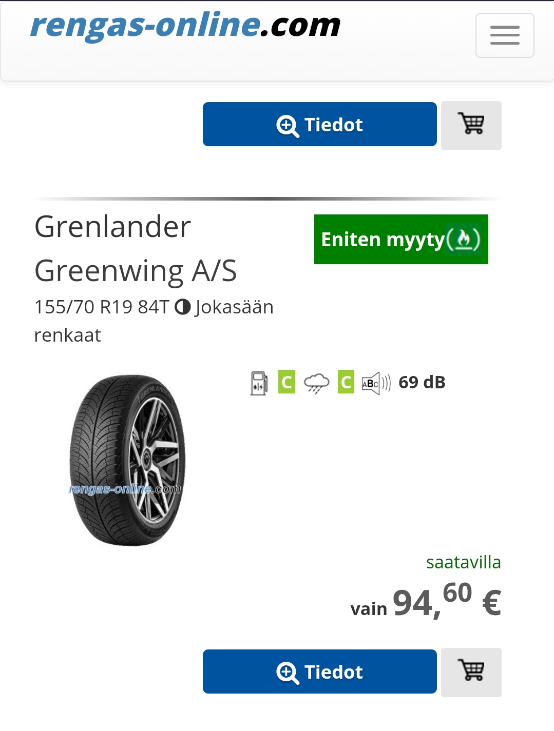 No ei se tietenkään renkaiden saatavuutta paranna, jos myyntimäärät on marginaalisia. Tuskin kuitenkaan ihan hetkessä markkinoilta poistuu, mutta mitään edullisia tarjouksia ei kannata odotella. Ellei jollekin rengaskaupalle ole sattunut jäämään ikääntyneitä renkaita varastoon... nämä eivät tietenkään se järkevin (turvallisin) vaihtoehto talvirenkaiksi...