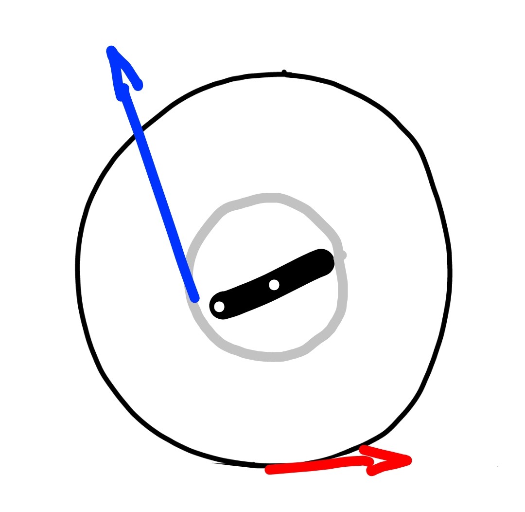 Juuri niin, mutta mielestäni jouston pitäisi tapahtua enemmän ylä-ala-suuntaan, eli tuo vipu osoittaisi ennemmin näin: