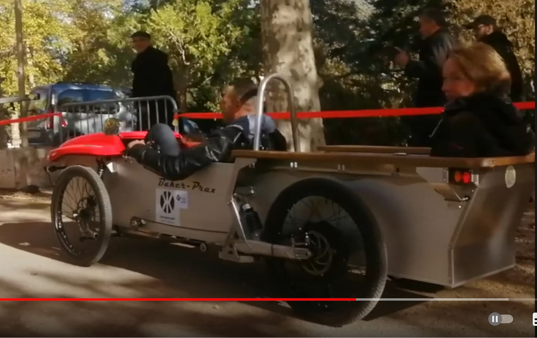 Videolla puuttuu etulokarit, jotka lienee tehty suojaamaan kuskin kyynärpäitä etupyörän heittämältä kuralta.