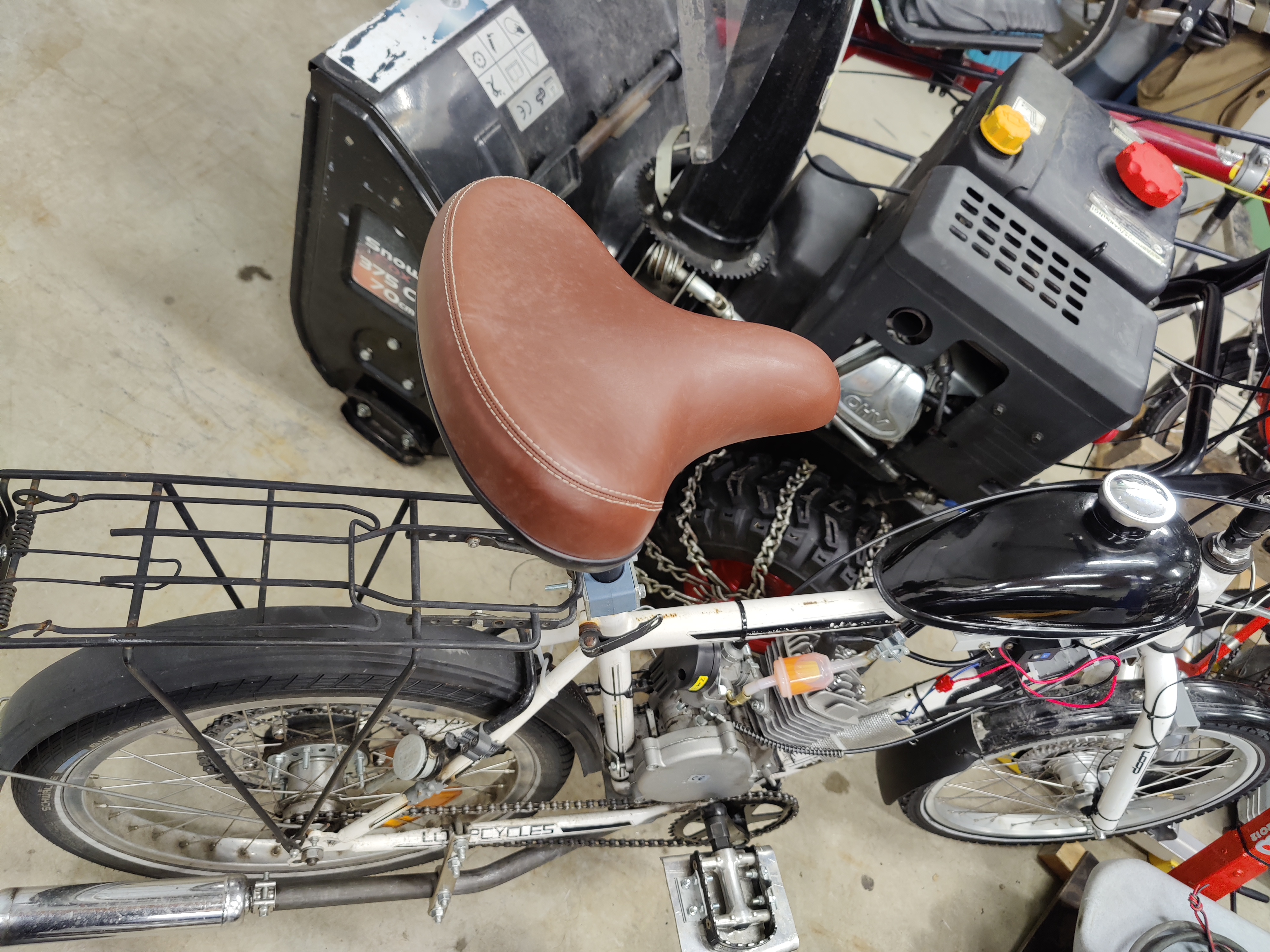 Tämä apumoottorin alusta 406 CF on tuntunut reinkarnaation jälkeen aivan tuskaisen hirveältä ajaa. Ihmettelin sitä kovasti, kun muistikuvissani oli paras pystäri mitä olen kokeillut. Sitten tänään kokeilin asentaa leveän cruiser satulan, mikä siinä aiemmin oli paikoillaan. Tulipa tosi hyvä! Miten satula voi vaikuttaakin niin paljon. Huono käsikin pysyy ohjaustangossa paljon paremmin. Ohjattavuus varsinkin liukkaalla helpottui. Testilenkillä pienen tahattoman luisunkin pystyi hallitsemaan kaatumatta. En oo tajunnutkaan kuinka paljon perseellä voi pystäriä ohjailla.