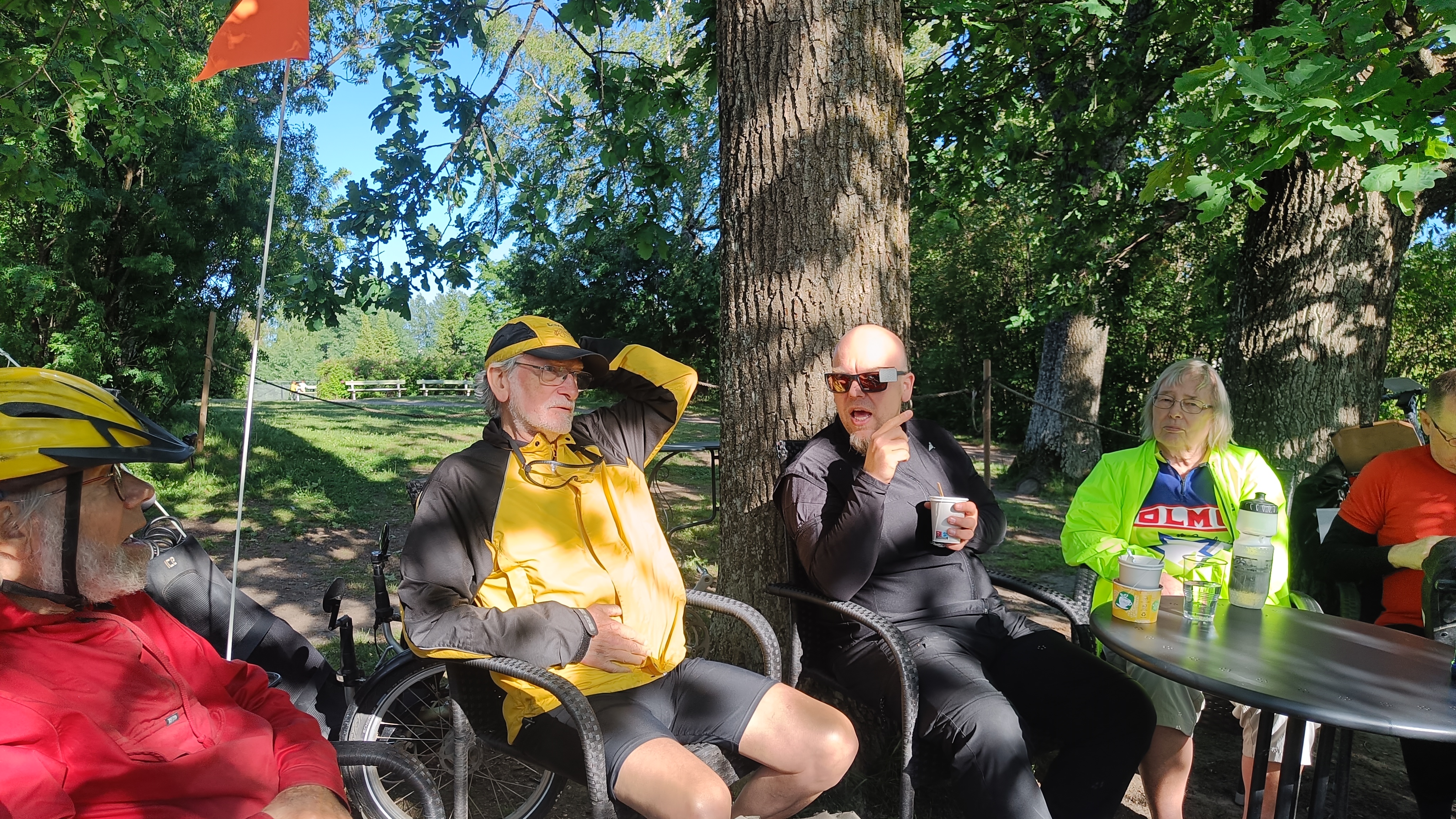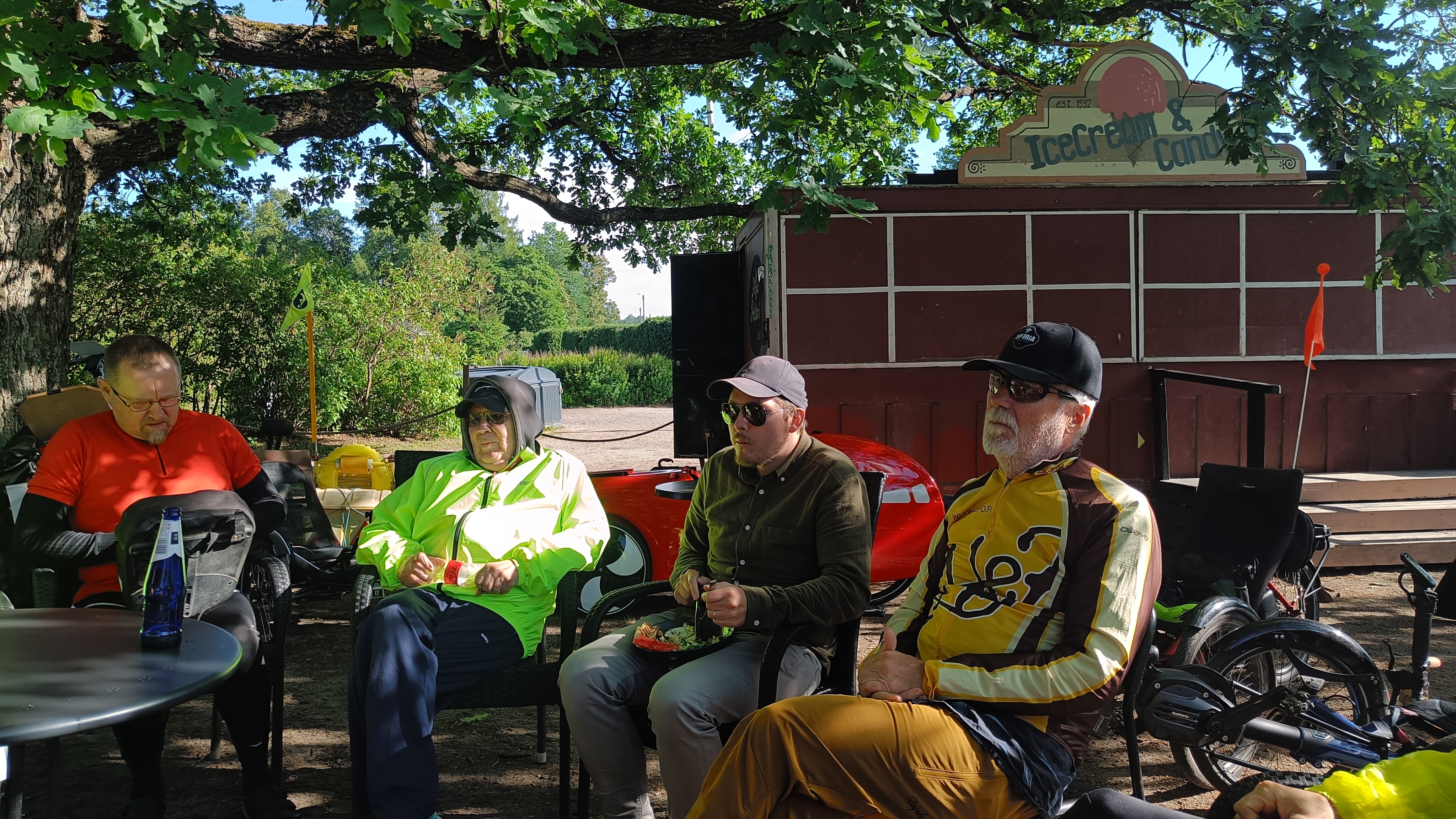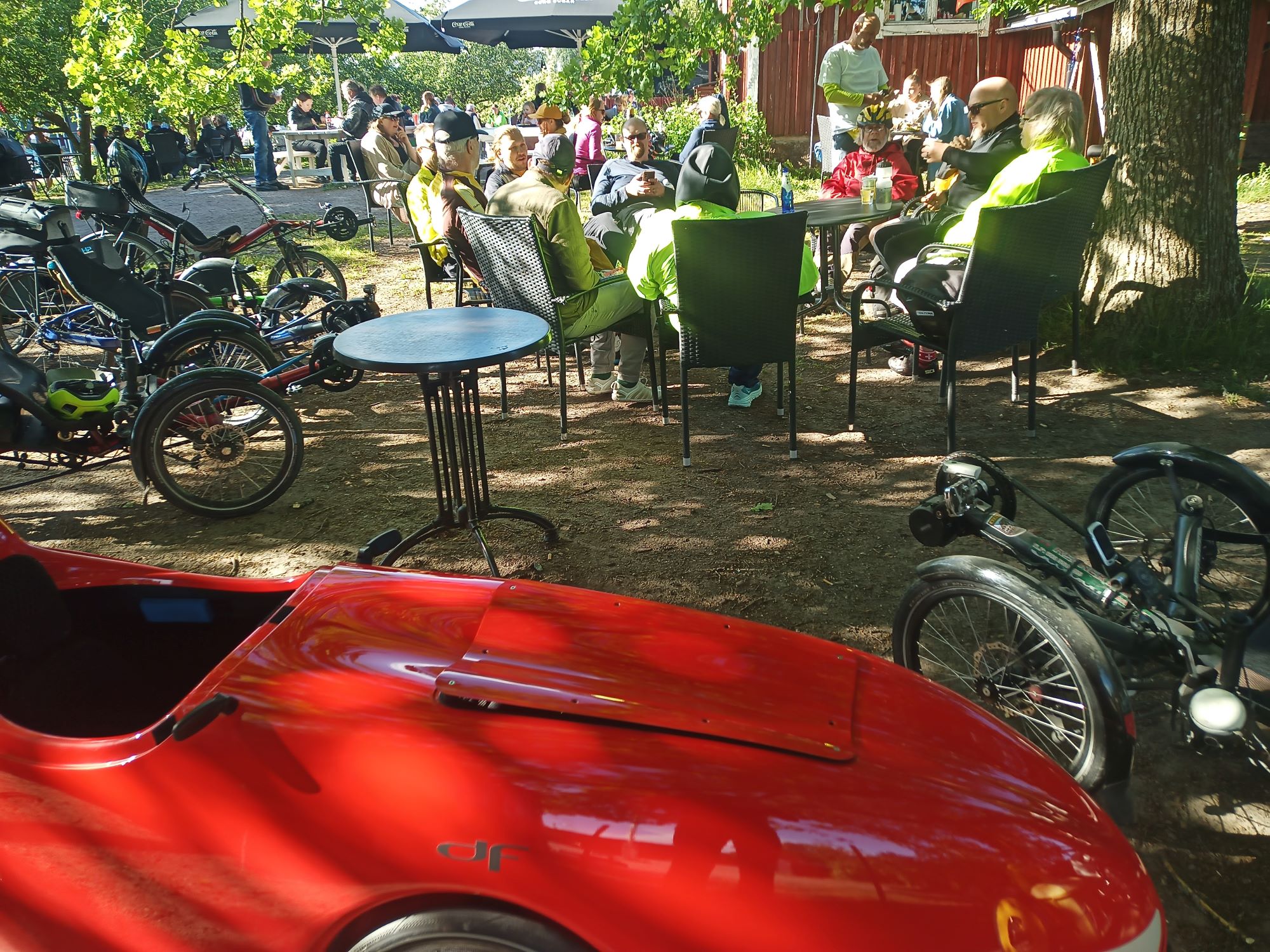 en itse ollutkaan nähnyt ikinä niin montaa nojapyörää yhdellä kertaa. Kaksitoista meitä taisi olla.