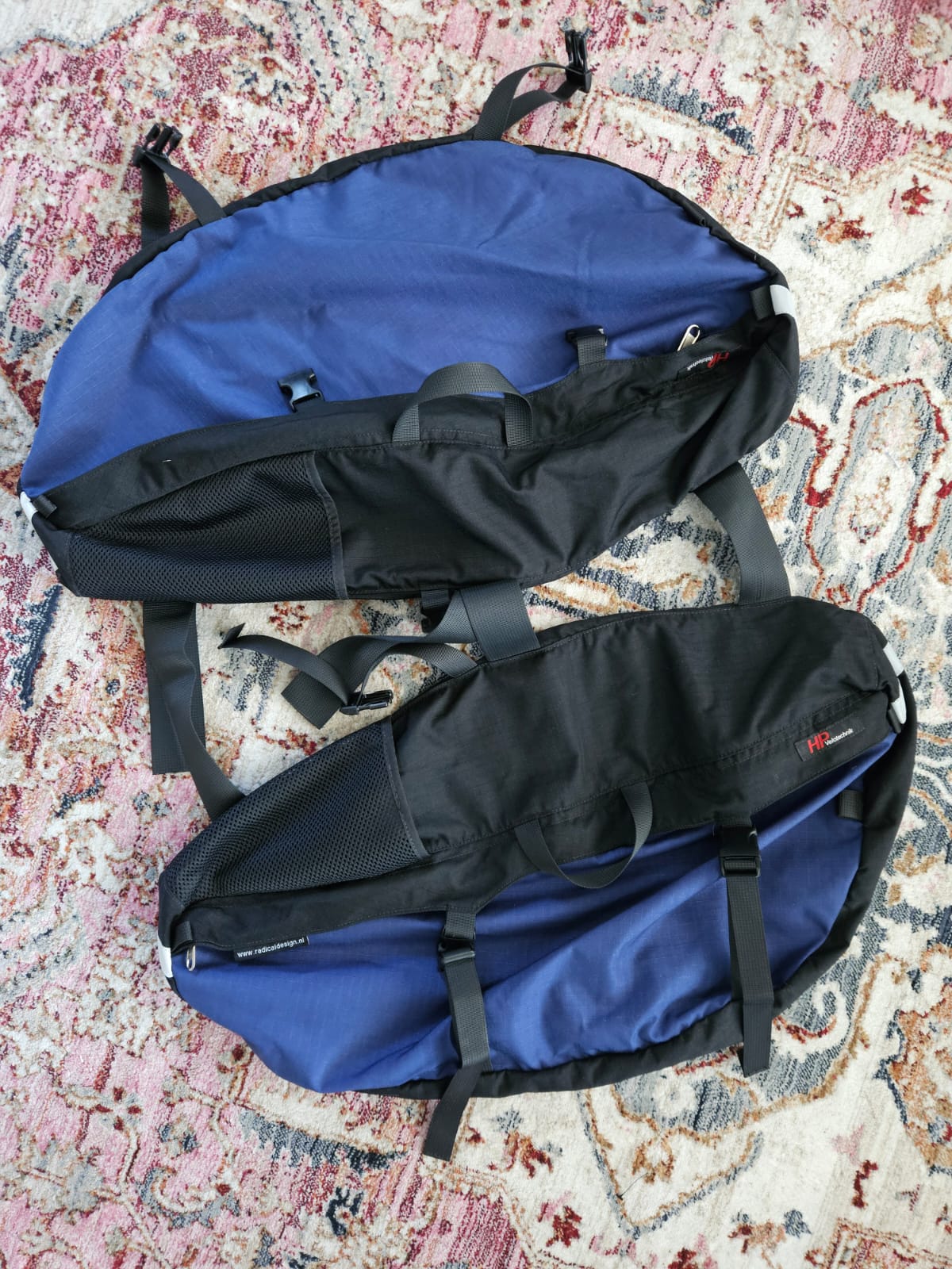 Omaan käyttöön turhan isot sivulaukut. HP Velotechnikin logolla varustetut, taustalla kuitenkin Radican Design, joka sekin näkyy laukuissa.