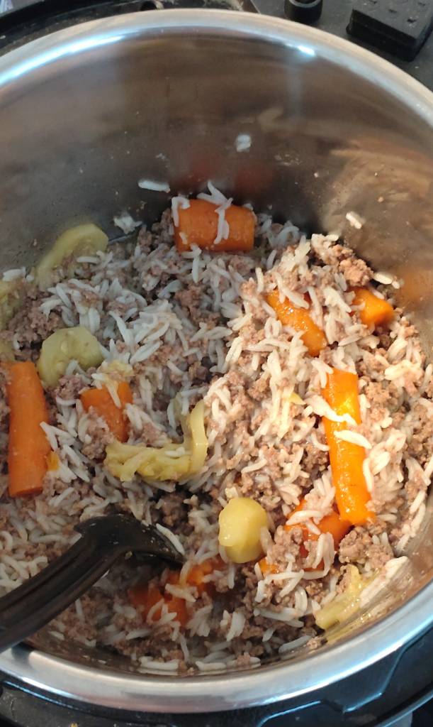 Melko nopeasti oppii, että minkä verran tarvitsee mikäkin raaka-aine kypsytysaikaa. Yleensä niitä on voinut lyhentää esim. perunan ("pieni" Rosamunda, kuorittu ja halkaistu) kanssa korkeapaineella 8-10 min on ihan riittävä. Skandinaavisia reseptejä ei laitteelle oikein löydy, joten on pitänyt luoda omia. Toivottavasti saan ne joskus jonnekin kootusti tarjolle. Jos autoon mahtuu, otan laitteen Yyteriin mukaan, jotta voidaan tehdä porukalla vaikka Polttoainerisottoa.