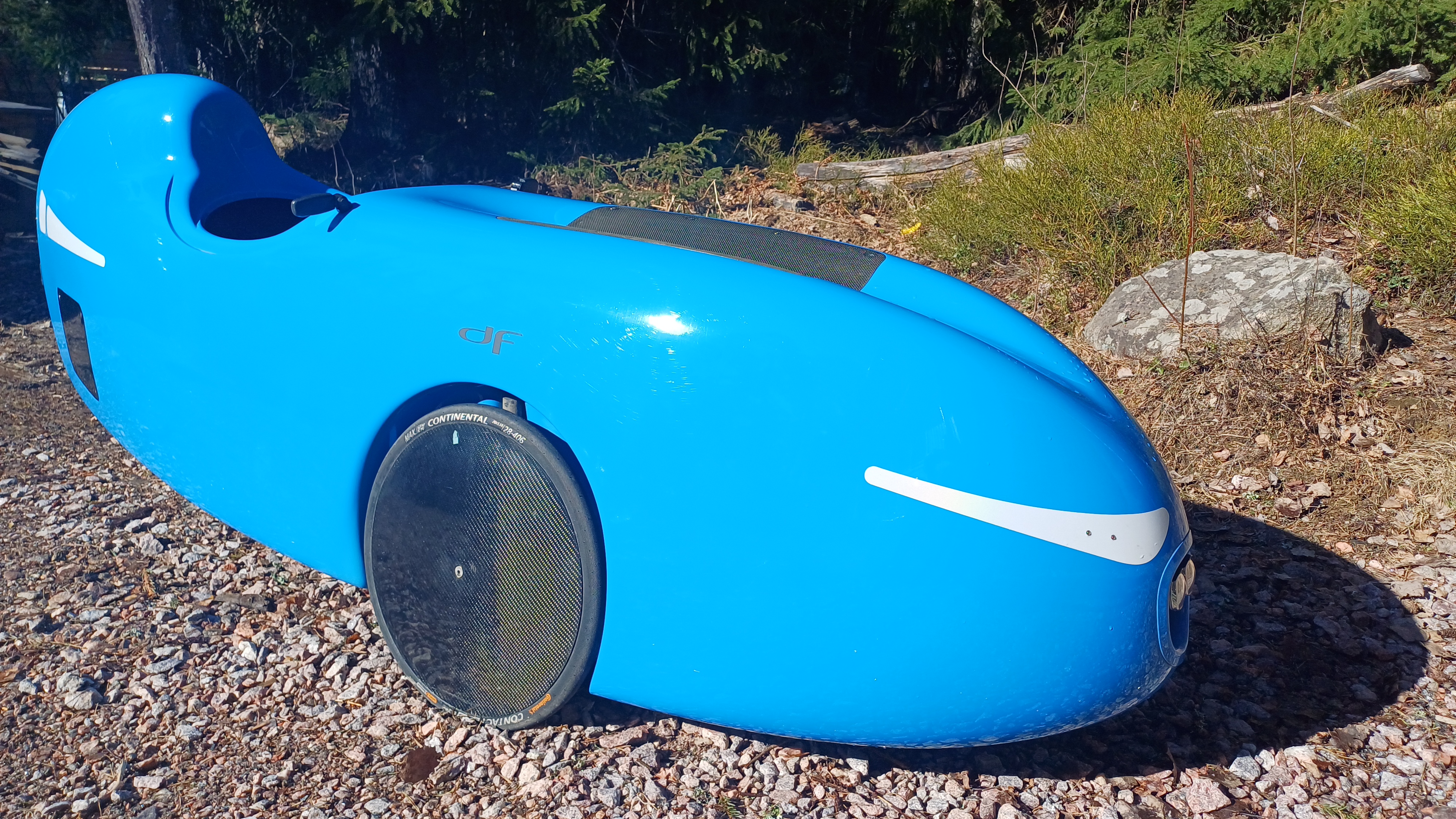 Minullahan on siis kaksi DF XL velomobiilia, kun viime keväänä onnistuin oranssi-valkoisen kinnerini särkemään ja hätäpäissäni sitten ostin tämän https://nojapyorafoorumi.fi/viewtopic.php?t=7282 rosterin sinisen DF XL:n jotta pääsisin nopeammin taas kinnerillä kulkemaan kun aikaa korjailuihin ei silloin ollut. Nyt olen vihdoin saanut oranssi-valkoisen korjauksen aluilleen ja luulen että sen noin kuukauden sisään voisin saada kuntoonkin, joten ajattelin, että voisin laittaa tämän sinisen nyt ikäänkuin ennakkomyyntiin, se voisi vapautua noin kuukauden sisään, jos kiinnostusta on.