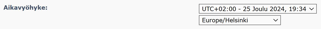 Näemmä. Minun omassa profiilissa oli alempi asetettuna UTC+2. Vaihdoin Europe/Helsinki. Jokaisen tunnuksen aikavyöhyke säädetään siis tunnuksen omista asetuksista: Omat asetukset > Asetukset -välilehti > Aikavyöhyke