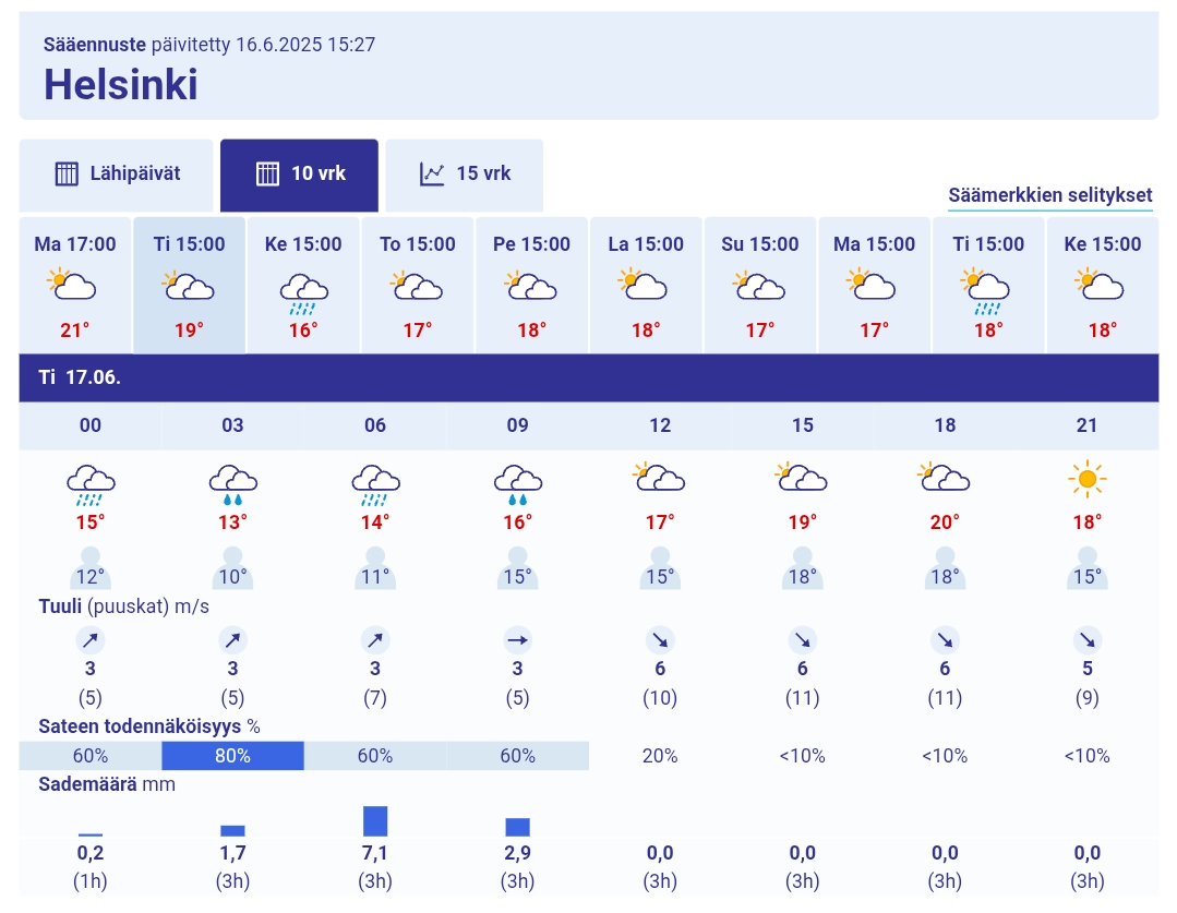 Huomisen ennuste näyttää oikein kelvolliselta iltapäivän osalta