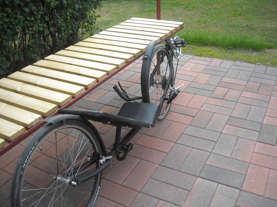 Sillä on lähinnä haettu pienempää jättöä ja rakentamisen helppoutta, lähinnä sellainen koeluontoinen idea ja pitää myös muistaa, että olin aika noviisi vielä pyörän teon alkuvaiheessa. En tosin vieläkään ole mikään mestari, mutta silloin tuo vaikutta ihan hyvältä ja helposti toteutettavalta ratkaisulta, enkä ole sitä toistaiseksi kokenut epäonnistuneeksi. Käsitykseni mukaan onnistuin saamaan sillä jättöä hieman pienemmäksi.