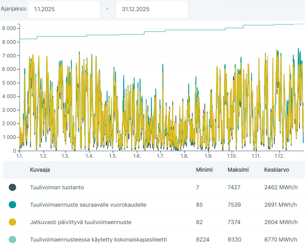 Tähän muistiin tuulivoiman kehitys ja tuotantohistoria viime vuodelta 2025.