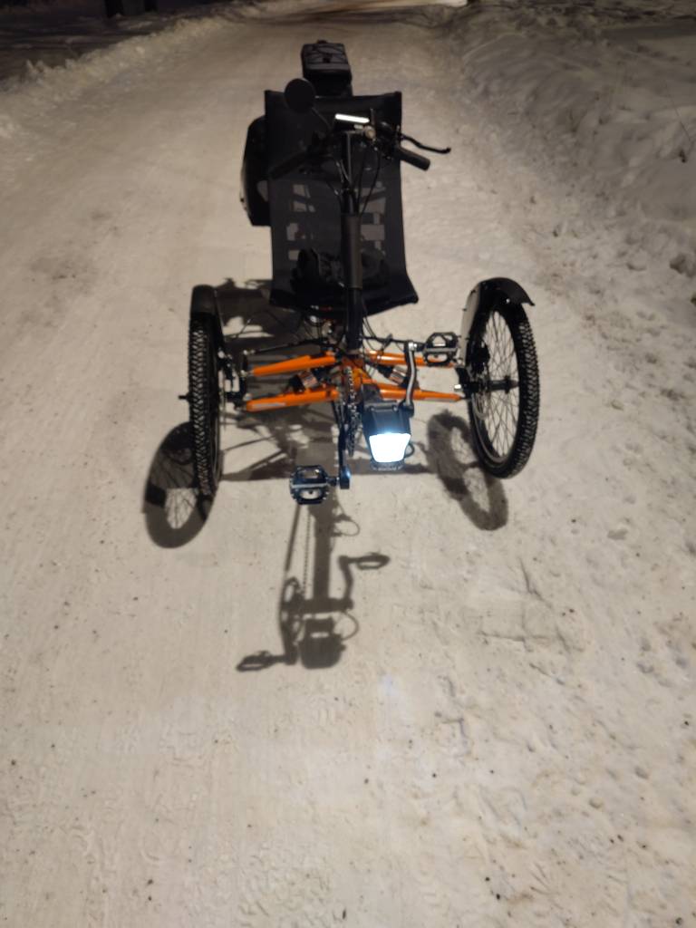 Pyörä tuntui toimivan, mutta pientä säätöä se kaivannee. Takakäsijarru ei pidä kovin hyvin. Saatoin ajaa se päällä. Penkistä liukuu hieman, jotan pitää säätää etupuomia vähän lyhyemmäksi, koska polkimet tuntuu olevan turhan kaukana.