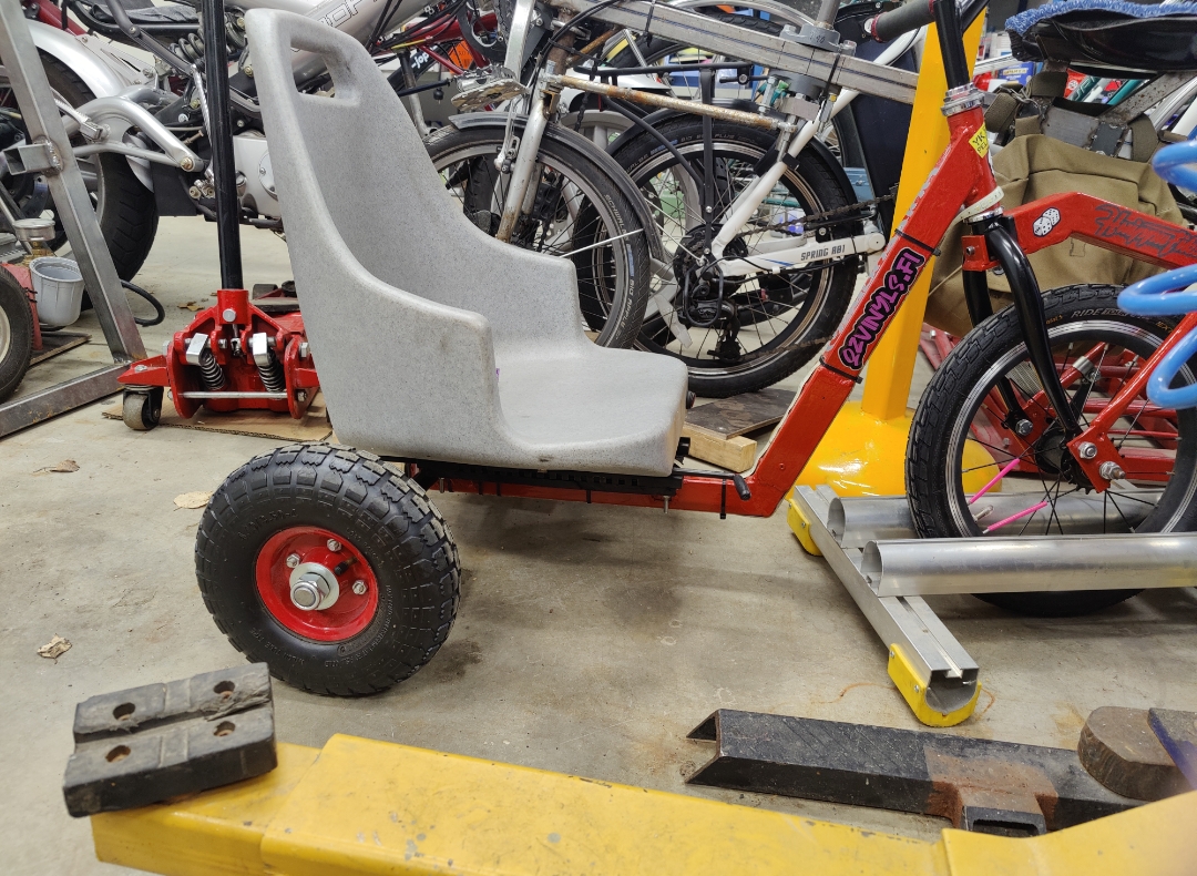 Tälle taittosähkärille ei oikein ole löytynyt käyttöä/käyttäjää, mutta on siinä toimiva sähkötekniikka. Lapsenlapsi on pitkään haikaillut luisuttelukolmipyörän sähköistystä. Siispä taittosähkäri pääsi osien luovuttajaksi.