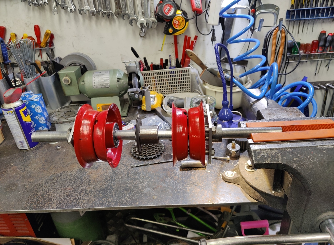 Enään jarrulevyn kiinnike, niin taka-akselin hilut ois valmiit.