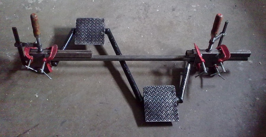 Kansalaisopistolla alkoivat taas hommat ja pääsen hitsaamaan poikkimenneen kampiakselin. Hankin Jyväskylän Ahselliltä kolmannen pallolaakeriyksikön joten nyt tulee rattaiston puolelle kaksi laakeriyksikköä niinkuin Nojanalle ehdotti. Se nyt sitten vaatii sen, että kampiakselin päiden tulee olla tarkalleen samalla suoralla ja sitä varten olen laatinut tällaisen jigin: