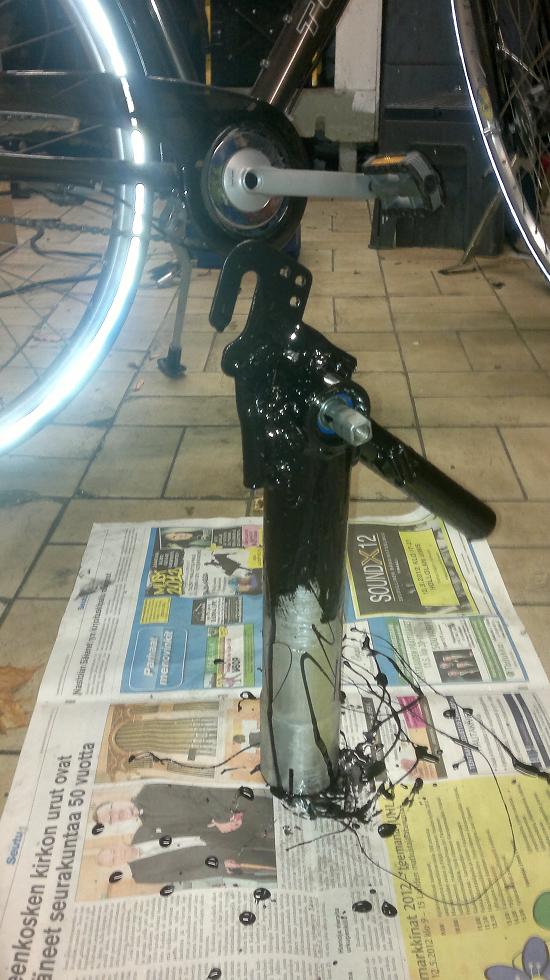 Periaatteessa ajokunnossa mutta käytännössä ei, pitää huomenna mennä vielä hitsaamaan etuvaihtajan vaijerin "stoppari" uusiksi kun nyt vaijeri hinkkaa siihen vaihtajan putkeen, nätisti kyllä vaihtaa ja kiertovaihtajan jälkeen (laitoin liipasimen) etuvaihtajan käyttö oli ihan miellyttävää. Takavaihtajaan ostattaa liipasimen vielä kun se on yhdeksällä naksulla, kun joku aika takaperin vaihteet oli huonoissa säädöissä (kolauttelin vaihtajaa) niin tuntui, että siellä oli ylimääräinen naksu mutta ei ollutkaan, on vissiin menty sitten jossain välissä kaksi vaihdetta kerrallaan... samapa tuo, vaihteet pelaa mutta toisesta päästä uupuu vaihde, ehkäpä viikon päästä ei enää, samalla tilasin pythoniin polkimet ja työkalut kun mokomat oli pääseet unohtumaan.