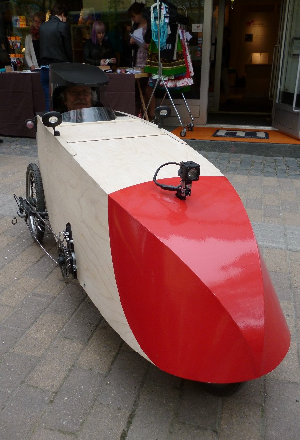 Jos tuossa olisi tavanomainen sivuketjuisen vasemmanpuoleinen ketjuvienti katteen sisäpuolella. Siitä ei tunnistaisi päältä, että se on polkemalla liikkkuva vehje. Nyt sekin näkyy päälle. Minusta tuo on taidetta. Varsinkin nyt, kun kabiini täydentää muotokokonaisuuden ja ulkopuolinen ketju selittää toiminnan.