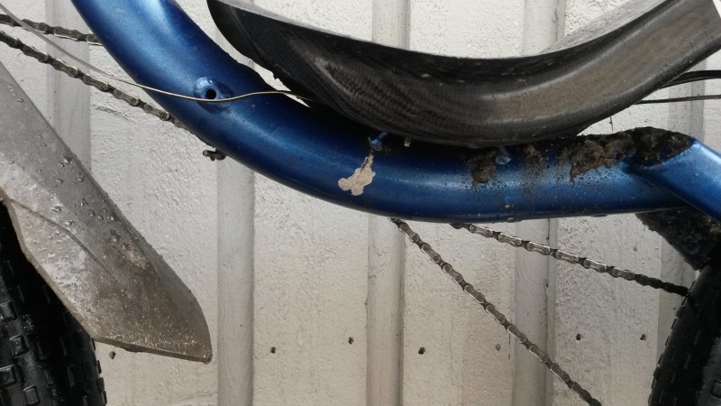 Tänään kesken lenkin huomasin että puomissa on murtuma lähellä hitsaus saumaa. Onneksi on tarjolla kilpuri josta saatoin sitten lainata puomin jotta pääsen jatkamaan läskillä ajelua.