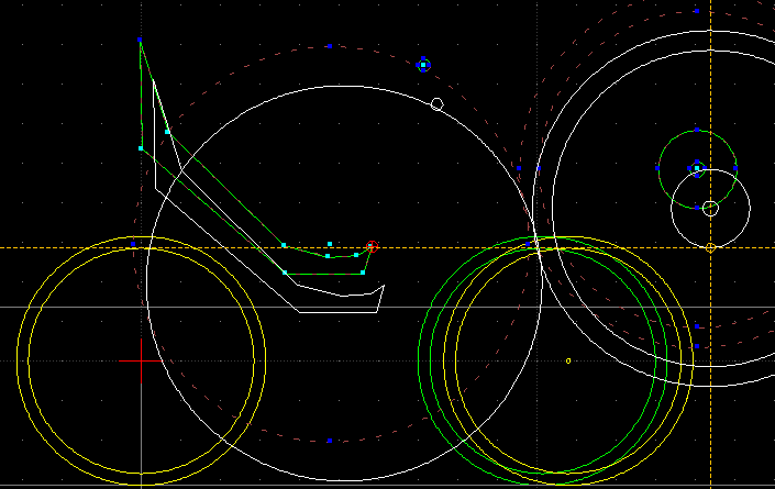 Laske vain kampikeskiötä. Mittailin kuvasta, että sylikulma on ollut vanhassa pyörässäsi vain 121 astetta, mikä on 15 astetta liian vähän siinen verrattuna, mitä yleisesti pidetään nojapyörälle sopivana. Me isomahaiset suosimme jopa 25 astetta suurempi sylikulmia jotkut (Petri) vieläkin suurempia. Kampikeskiön laskeminen alemmas mahdollistaa perushaarukan käytön. Olethan huomannut, että etuhaarukkaan laitetaan reilummin offsettiä vinon ohjauskulman takia, jottei tule liian suurta jättöä. Tämäkin lisää etäisyyttä kampikeskiölle. Kyllä minä laittaisin kammet kiinni haarukkaan ja alkaisin mallailla livenä ja jättäisin joutavat piirtelyt insinööreille. ;)