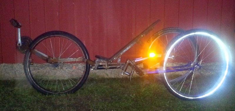Kokeilin lyhentää narua reilusti. Keskiö alempana kuin penkki. Loppui roskien lentäminen naamalle ja ajaminen onnistui jopa pää taaksepäin käännettynä. Uskalsin ajaa myös pätkän pikatien laitaa. Ohjaus muuttui selvästi levottomammaksi, mutta epätasaisuuksissa ajaminen helpottui kovasti. Kuoppaisella hiekkatiellä, kun intouduin yrittämään kuinka kovaa sillä voi monttuihin ajaa, putosivat jalat polkimilta ennen kuin meni hallitsemattomaksi. Matalaan versioon erona oli etten kaatunut vaan jatkoin vain juoksemalla :) Selvänä miinuksena matalaan verrattuna oli jalkojen huonompi pysyminen polkimilla ja rupesin kaipaamaan hartiatukea. Turhan luonnollisesti irtosi yläselkä penkistä vaikeuttaen hallintaa.