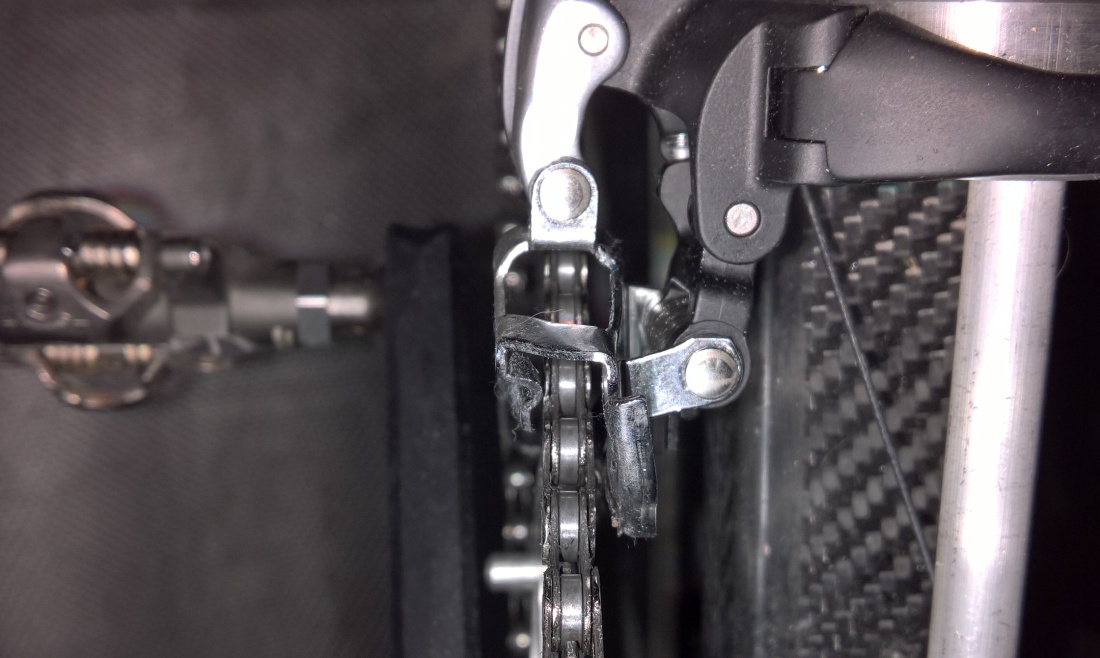 Minkä liikkumisella selität polkemisen mukana muuttuvan välyksen ketjun ja vaihtajahäkin välissä? Käsittääkseni tuo vaatii rotaation, joka voi olla kotoisin vain kelkan rotaatiosta tai sen rakenteen vääntymästä.