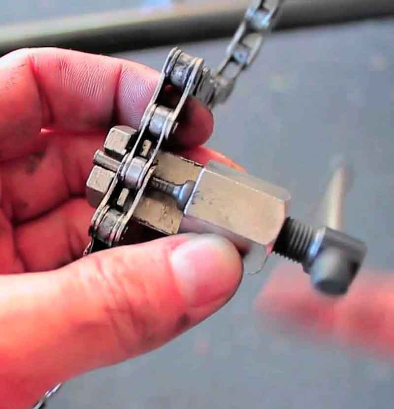 Kolmas tapa liittää ketjuja on katkaista ketju ulkolenkin pään kohdalta ja työntää ketjunkatkaisutyökalulla tappi takaisin paikalleen.