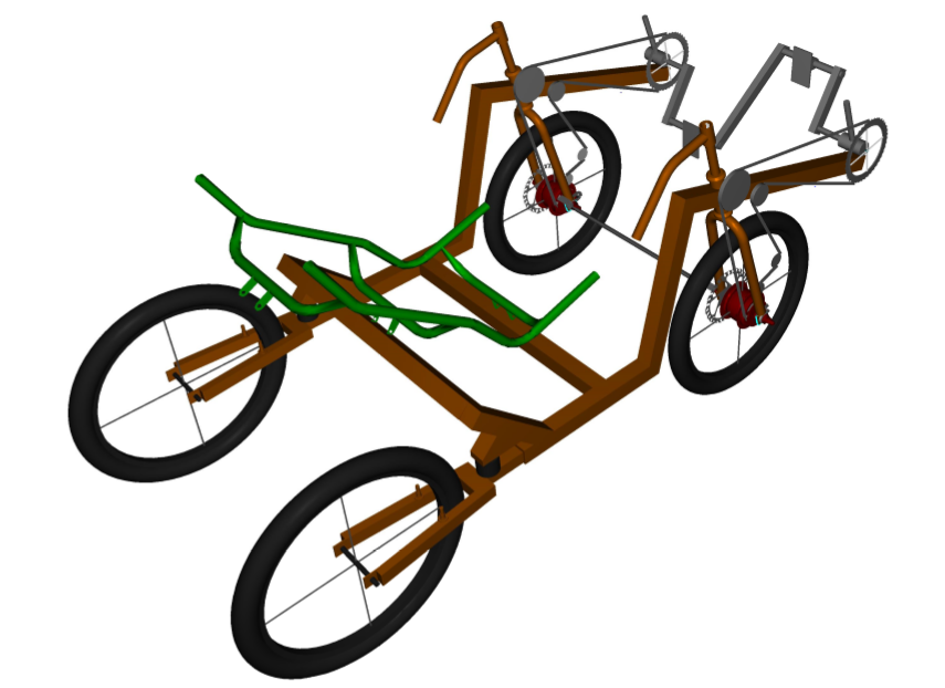 itse mietin kahta rinnan yhteenkytkettyä kiertyväketjuista, jossa olisi Z-kampiakseli ja ketju molemmin puolin. Toisella puolen riittäisi varmaan yksi välitys vapaarattaalla, sama kuin toisen puolen pienin.