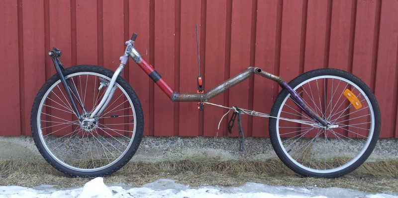Tarkoitin tuon tikkurunkoisen takarengasta. Siinä on paino yli 60% takana ja vain metrin akseliväli.