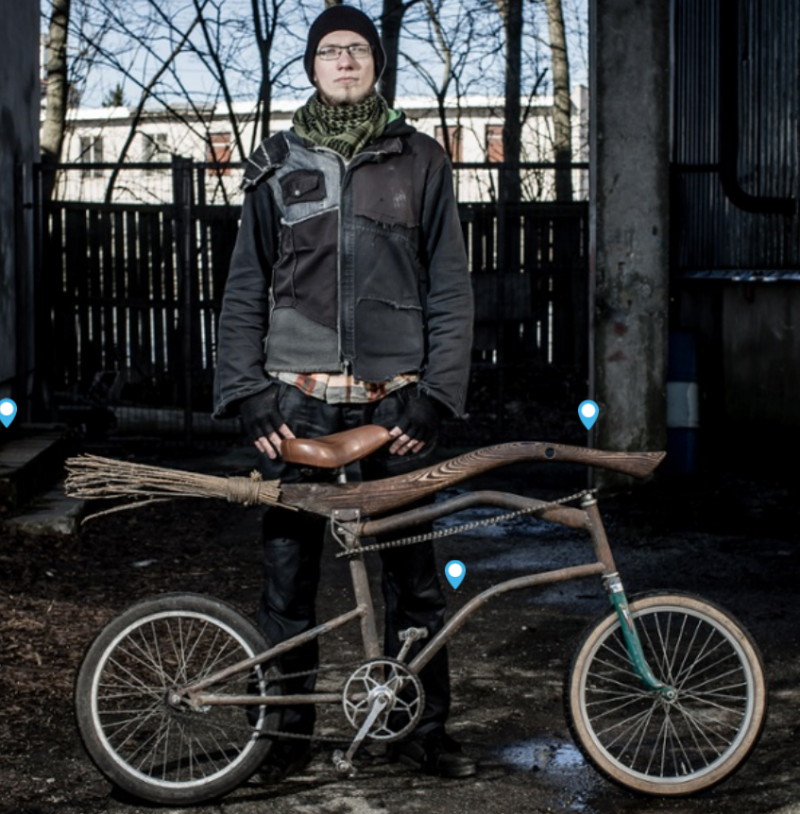 Virolaisilla on lennokkaita pyöräkehitelmiä: Harry Potter-henkinen luutapyörä ja sähkö-noja-MBB-moottoripyörä, vai mikä olisi, polkimiahan ei ole, vaan vain jalkatapit.