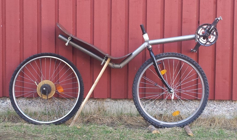Ajoasento pyyttonista, mutta korkeutta hieman lisää ja takarengasta joku sentti eteenpäin, niin painojakauma menee tasan. Paluupuolen kettingin ohjaus on suunnitelmissa hoitaa putkella.