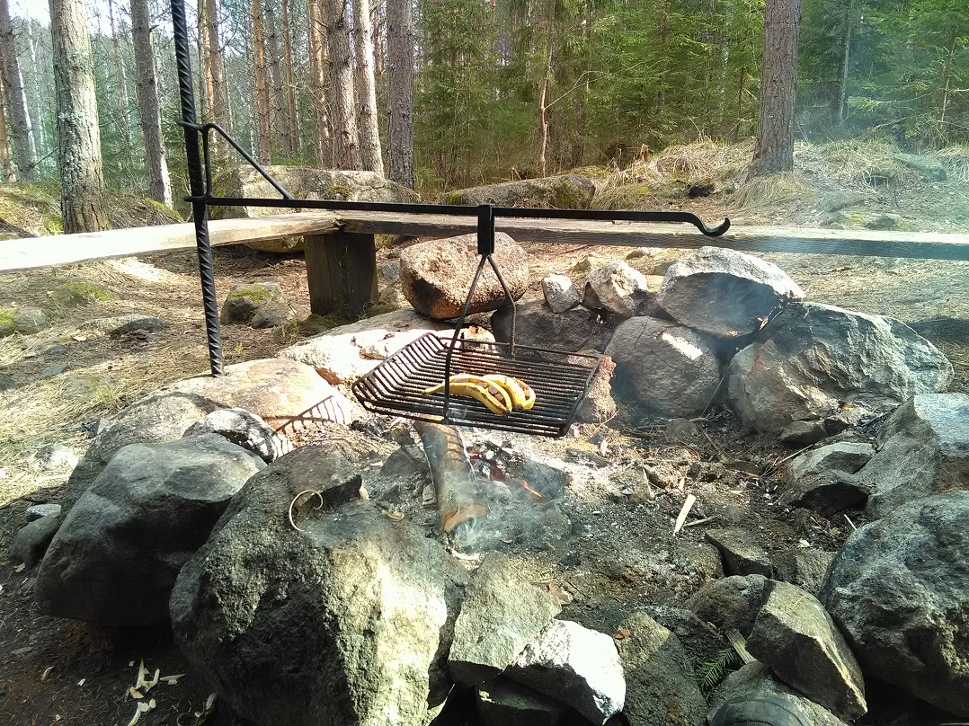 Nuotiolla evästeltiin ja kun kerran lusikat unohdin niin suklaabanaaneiden syöntiä vartein sai pulikat vuolla, on muutes maailman paras retkijälkiruoka.
