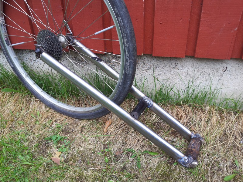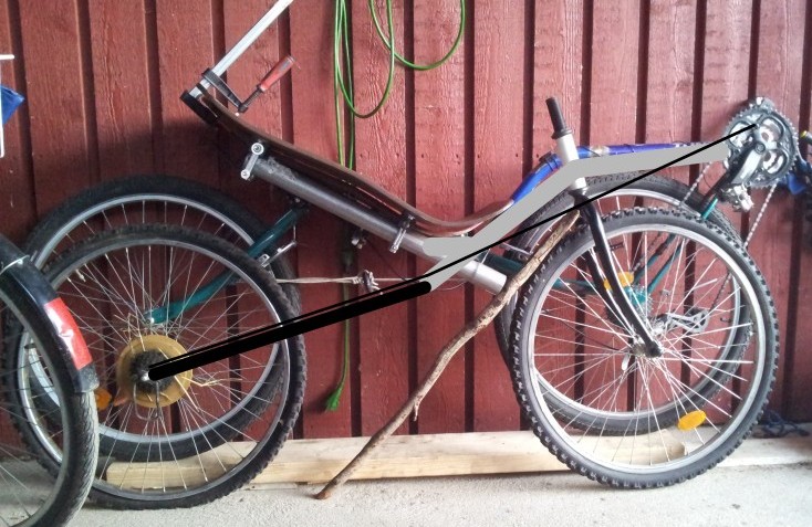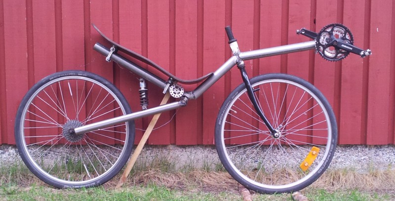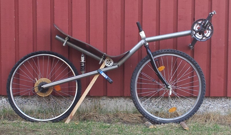 Ajoasento pyyttonista, mutta korkeutta hieman lisää ja takarengasta joku sentti eteenpäin, niin painojakauma menee tasan. Paluupuolen kettingin ohjaus on suunnitelmissa hoitaa putkella.