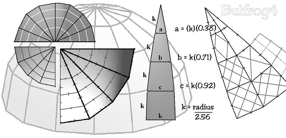 Mut toi sun postaama levitysohjehan kyl kertoo kaiken tarvittavan. Siinä esitettyä levitystekniikkaa on mahdollista soveltaa muihinkin kupumuotoihin, kuin puhtaaseen palloon. Ylin kuva kuvaa tässätapauksessa keulan sivuprofiilia ja voit hahmotella itsellesi siihen haluamasi muodon. Kun muoto on selvillä jaat pinnan harpilla tasaväleihin(esim: a-g) ja seuraat ohjetta..
