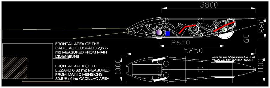 Jos laitat sellaiset ilmanottoaukot tuohon kohtaan, että ilma todella kulkee sisään päin, ei ole toivoakaan 100 mph tai edes 100 km/h ylittämisestä ilman todella suurta moottoria ja akkua. Jos tuohon tosiaan avataan aukot alipaineen maksimin kohdalle ja toinen perään, virtaa ilma perästä kohti keulaa.