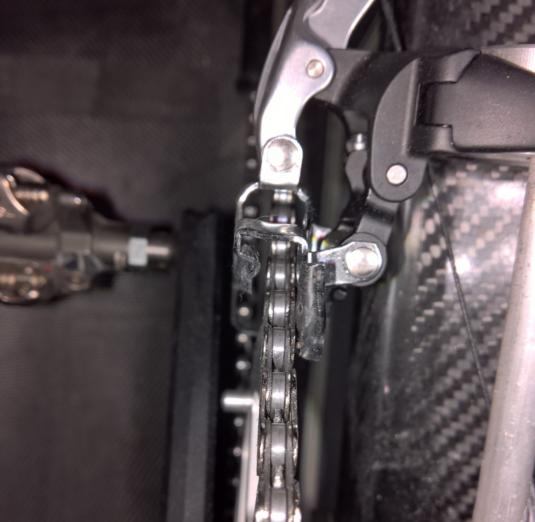 Minkä liikkumisella selität polkemisen mukana muuttuvan välyksen ketjun ja vaihtajahäkin välissä? Käsittääkseni tuo vaatii rotaation, joka voi olla kotoisin vain kelkan rotaatiosta tai sen rakenteen vääntymästä.