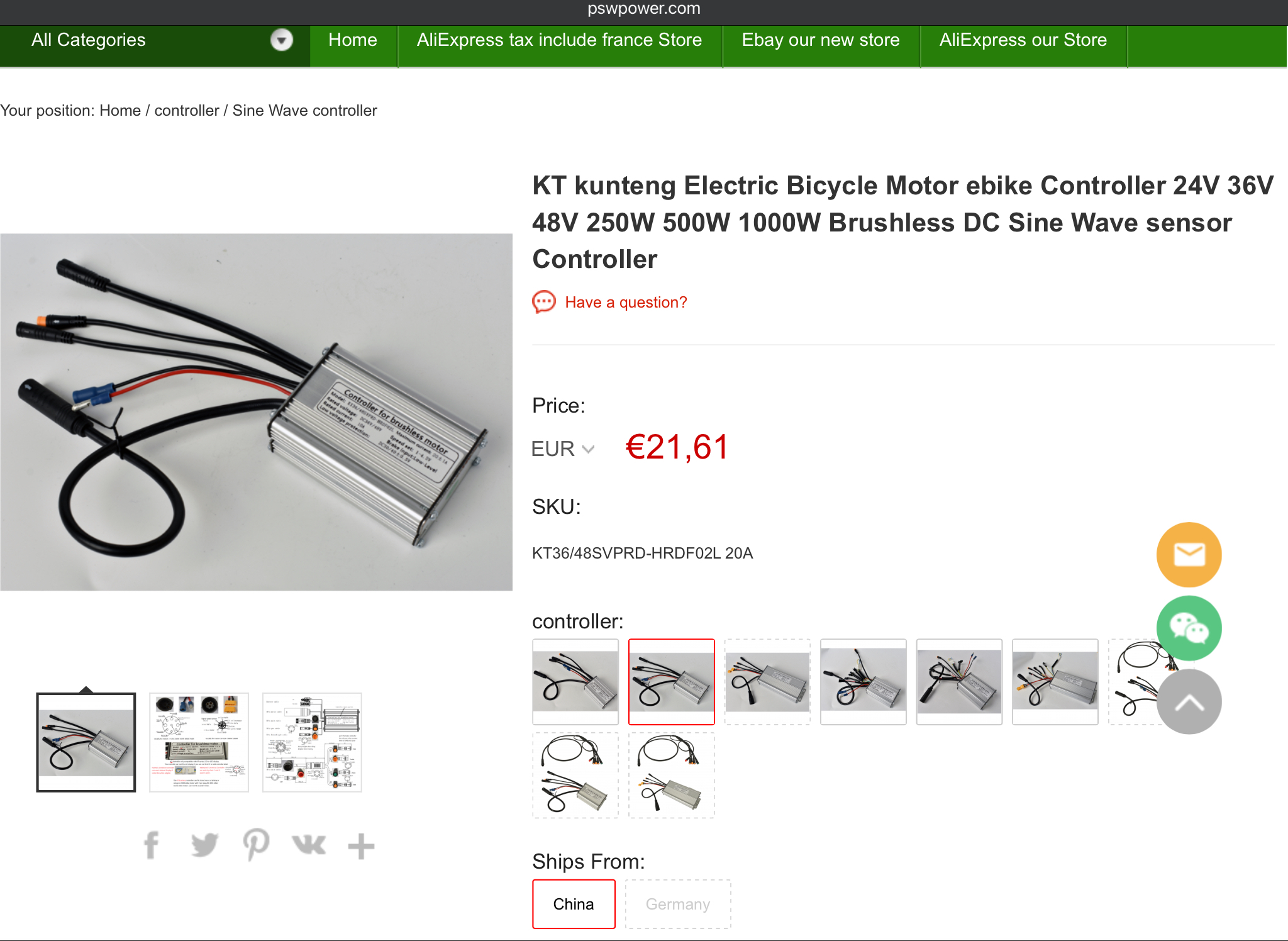 Sivistin itseäni ja selvisi pyörässäni olevan ZWS = kanttiaalto kontrolleri. Nykyisin Kunteng tekee SVP = siniaalto kontrollereita.