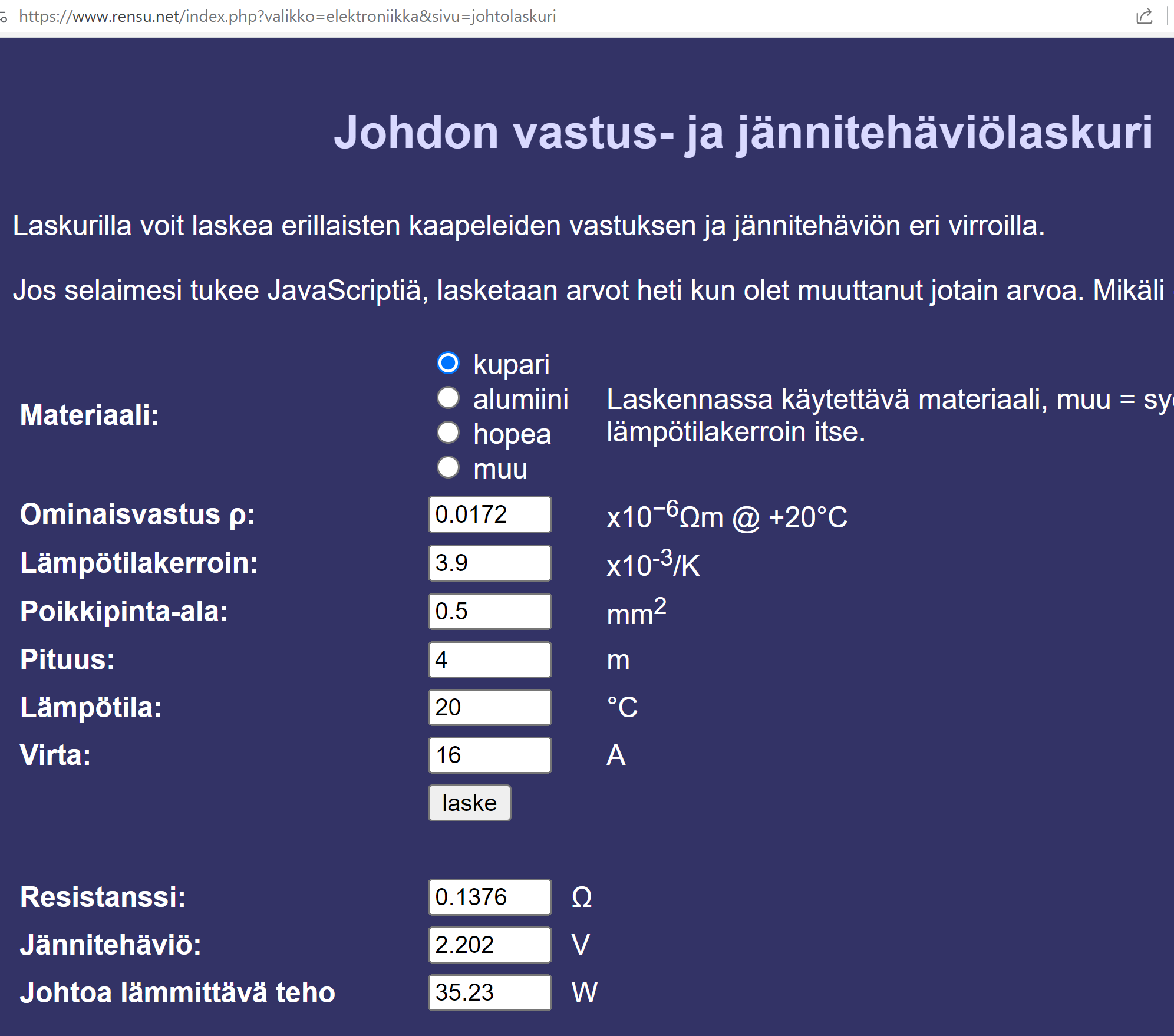 Kuparilangan vastuksen lämpökerroin on kyllä pienempi kuin vastuslangan, mutta varmaan silti riittävän tarkka tieto tästäkin olisi saatavissa. -Ehkä. ![]()