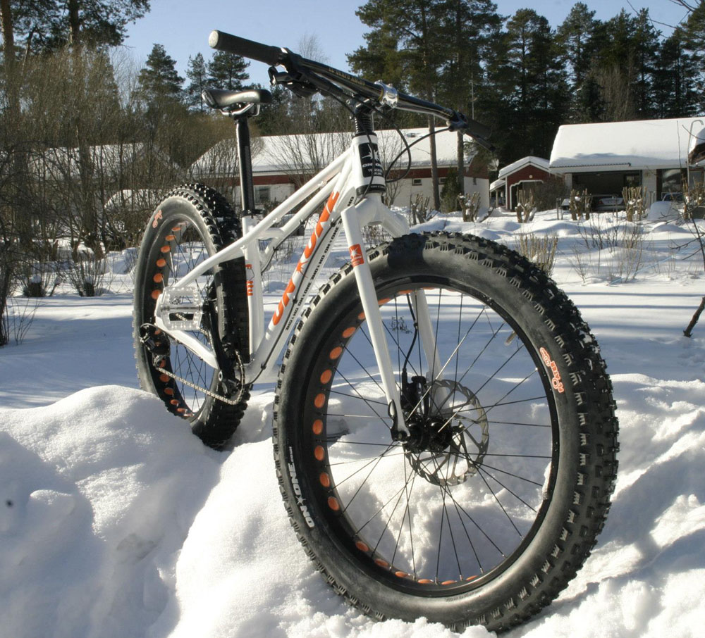 Läskit renkaat pelaa toki lumella, ja varsinkin nuo 3-5 tuumaa leveät. Vauhdilla tuskin pääsee elvistelemään ja eikös Wacky kommentoinut jo että märällä jäällä ovat liukkaat. Lisänä on vaikeudet saada nakkeja mahtumaan pyörään ja etenkin ketjuvaihteistoa saada toimimaan niillä vaihteilla joita hitaassa ajossa tarvitaan. Ellei tietysti osta läskejä varten koko pyörää.